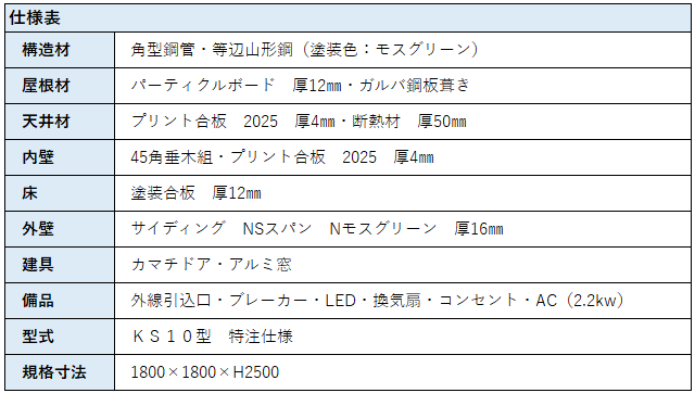 | 構造材 | 角形鋼管・等辺山形鋼 |